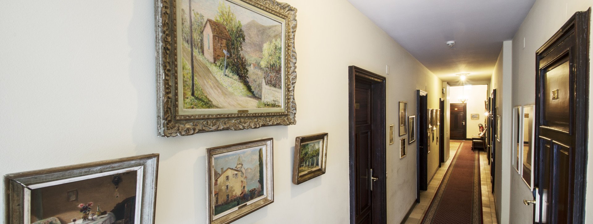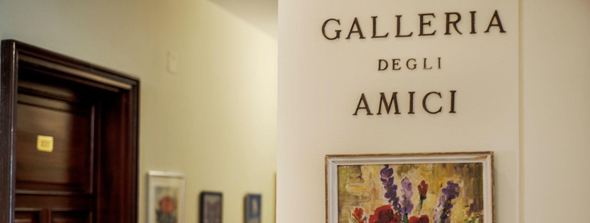 Alice Schmid-Disler (*1906 - †1990), 2. Generation der Inhaberfamilie und Tochter des Hotelgründers, liebte es, freundschaftliche Beziehungen zu Künstlern und Malern aus ganz Europa zu pflegen. Um ihre liebsten Werke mit den Hotelgästen zu teilen, richtete sie die Gallerie degli Amici (Galerie der Freunde) im Flur ein, der vom zweiten Stock in den Garten führt.