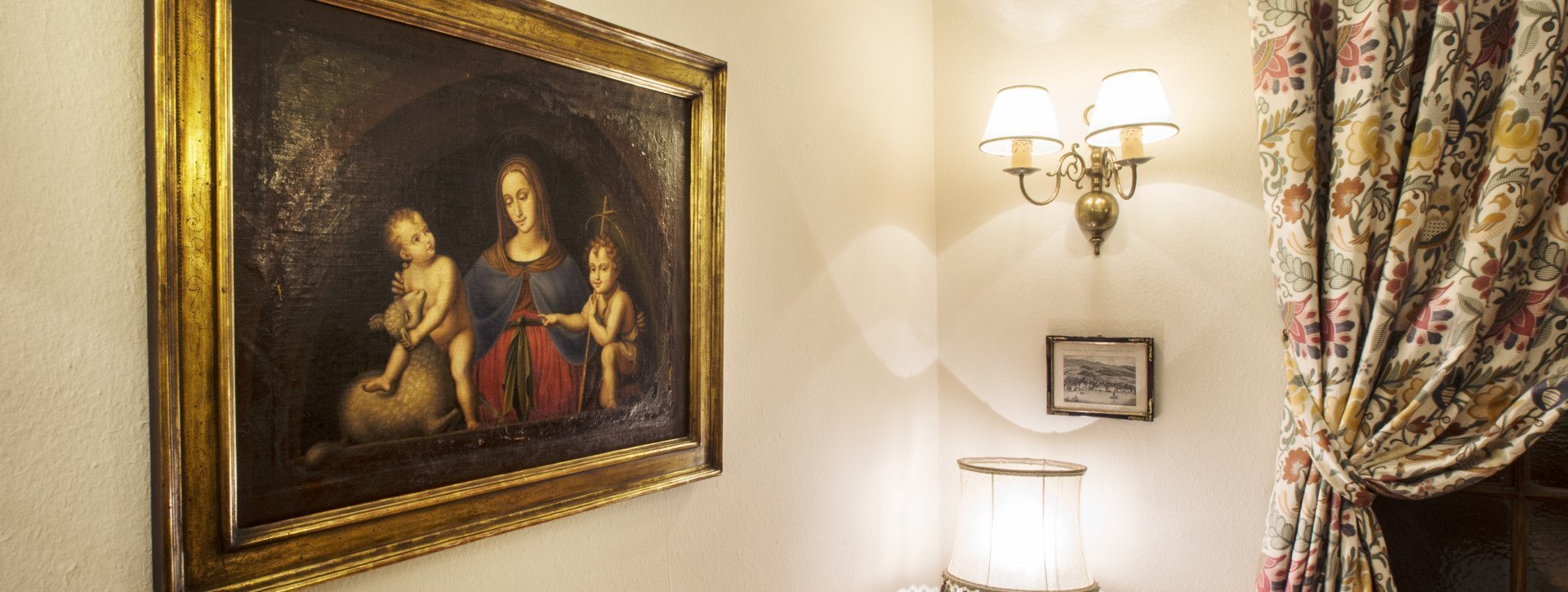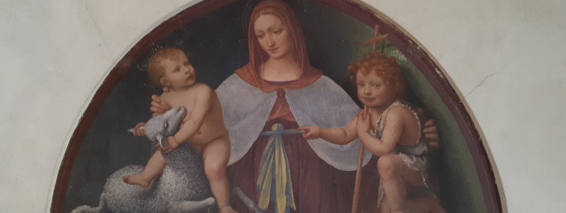 Kopie von Bernardino Luinis Fresko, mit der Darstellung der Madonna mit dem Kind und dem Heiligen Johannes, die sich in der Kirche Santa Maria degli Angioli (direkt neben dem Hotel) befindet.