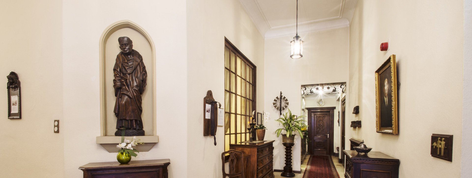Patron von Burgund und unter Anderem der Barkeeper; dies ist für diese Statue von ganz besonderer Bedeutung da sie nicht zufällig von Otto Schmid (Hotel-Direktor von 1932 bis 1953) und seinem Freund und Antiquar Josef „Peppino“ Willimann gegenüber der Lobby-Bar platziert wurde.