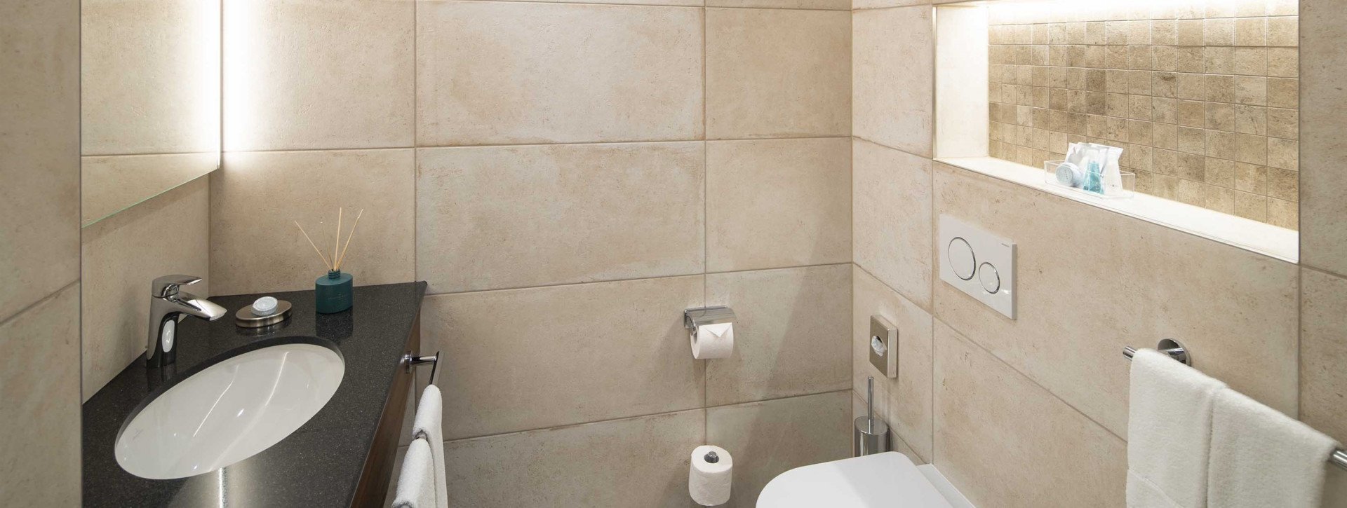 - Privates Badezimmer mit WC und grosszügiger Dusche, Toilettenartikel und Haartrockner