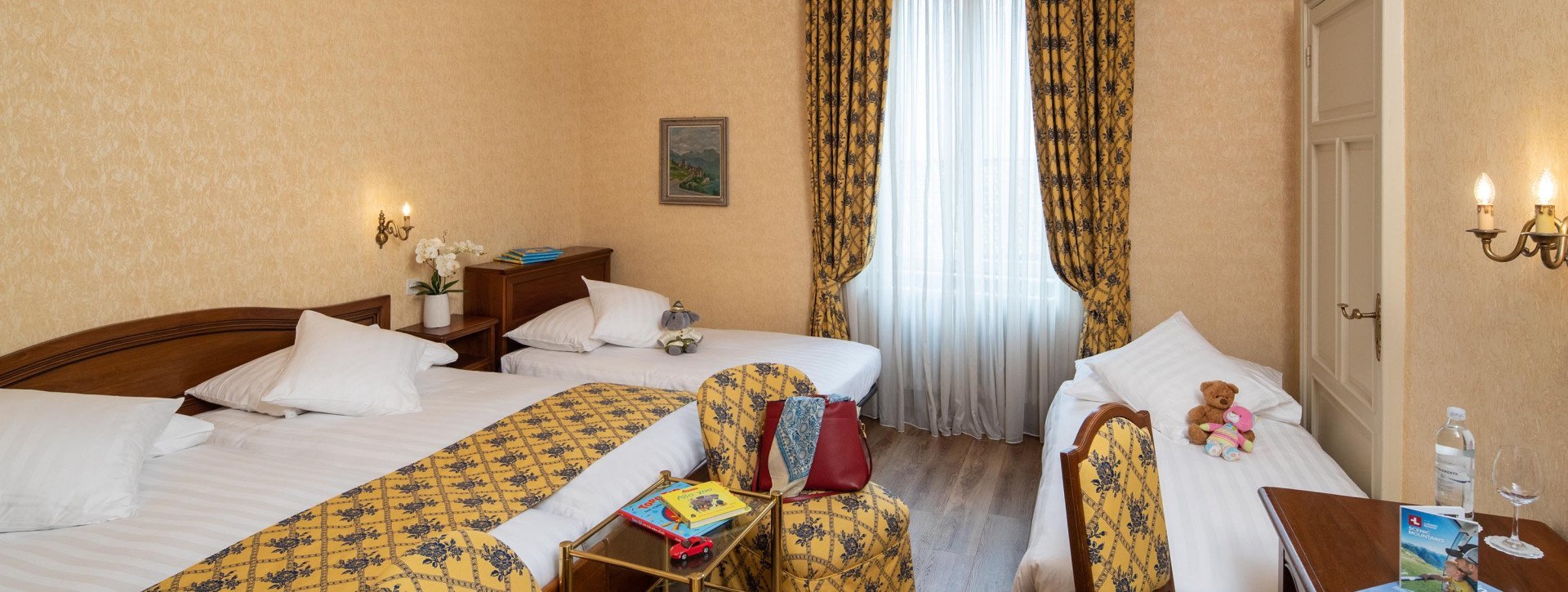 - zwei beieinander stehende Betten 2m x 1m und bis 2 Zustellbetten mit Swiss-Made Matratze